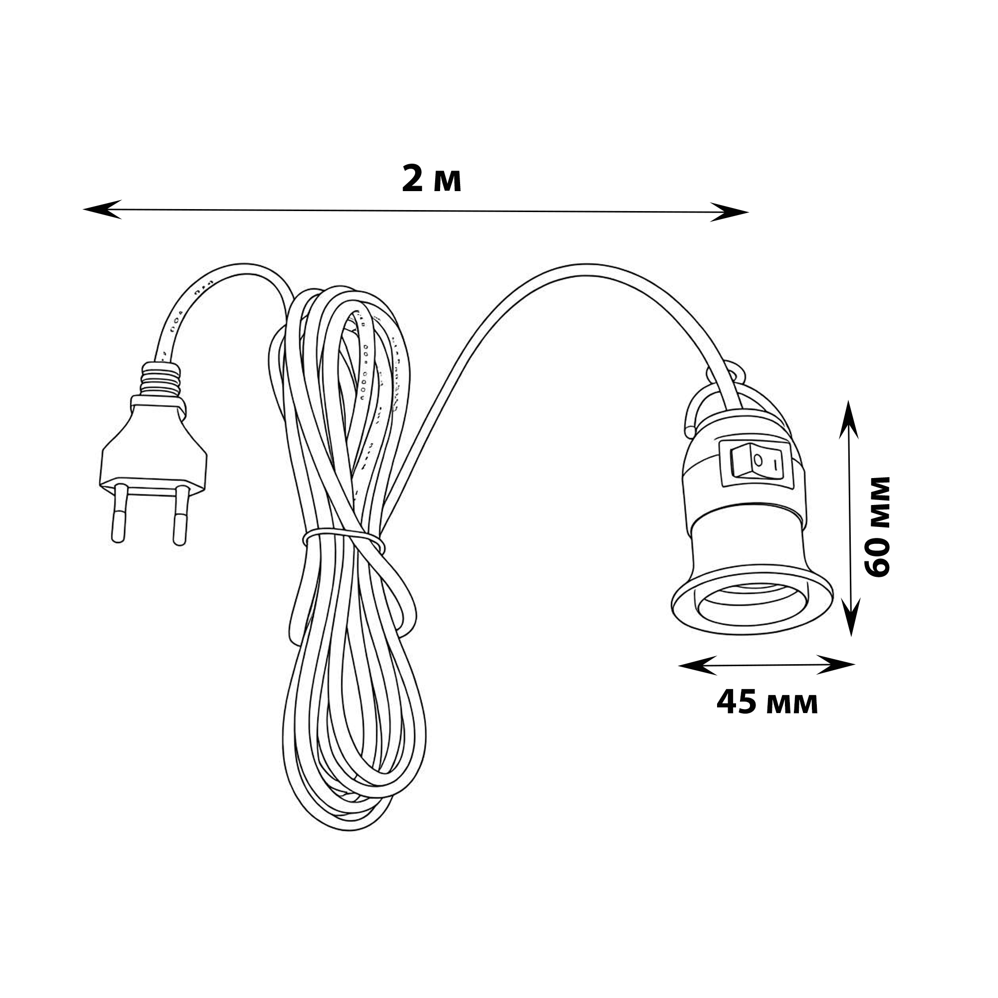 DLC-P-T50B-E27 2M WHITE Патрон подвесной с выключателем и штепсельной вилкой. 200см. Цоколь Е27. Белый. TM Uniel