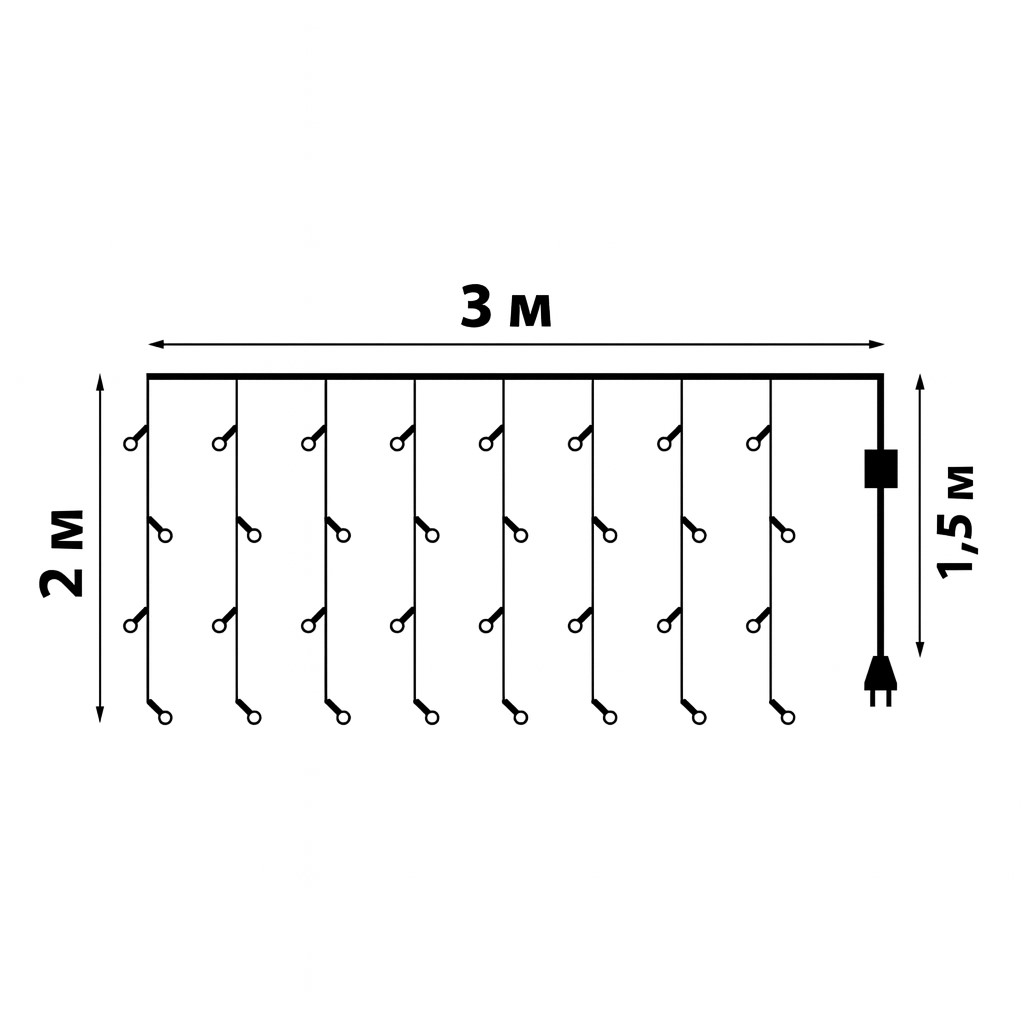 ULD-C3020-160-DTA BLUE IP20 Занавес светодиодный. 3х2м. 160 светодиодов. Синий свет. Провод прозрачный. TM Uniel