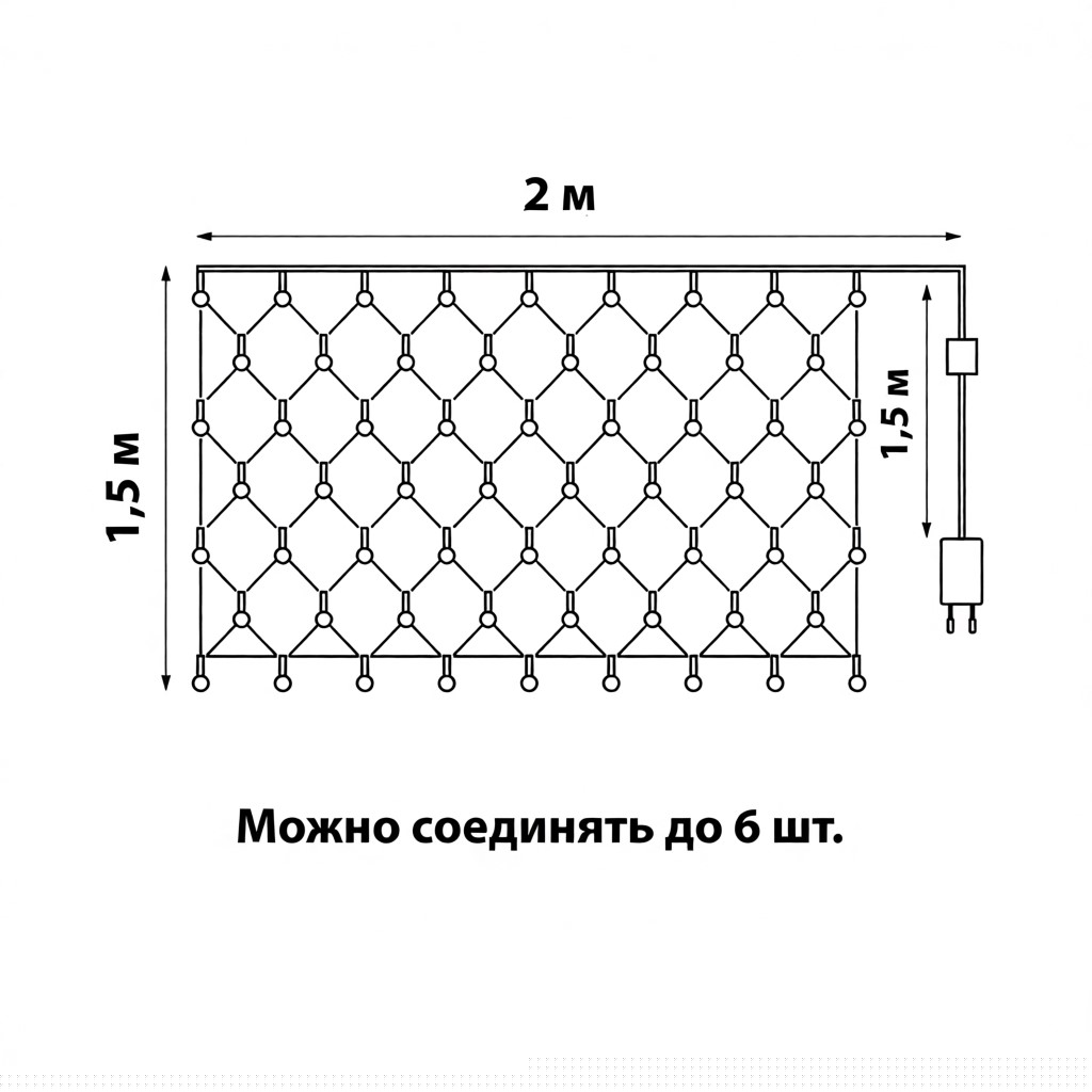 ULD-N2015-288-SBK WHITE-BLUE IP67 Сетка светодиодная. статическое свечение. 2x1.5м. Соединяемая. 288 светодиодов. Бело-синий свет. Провод черный. TM Uniel.