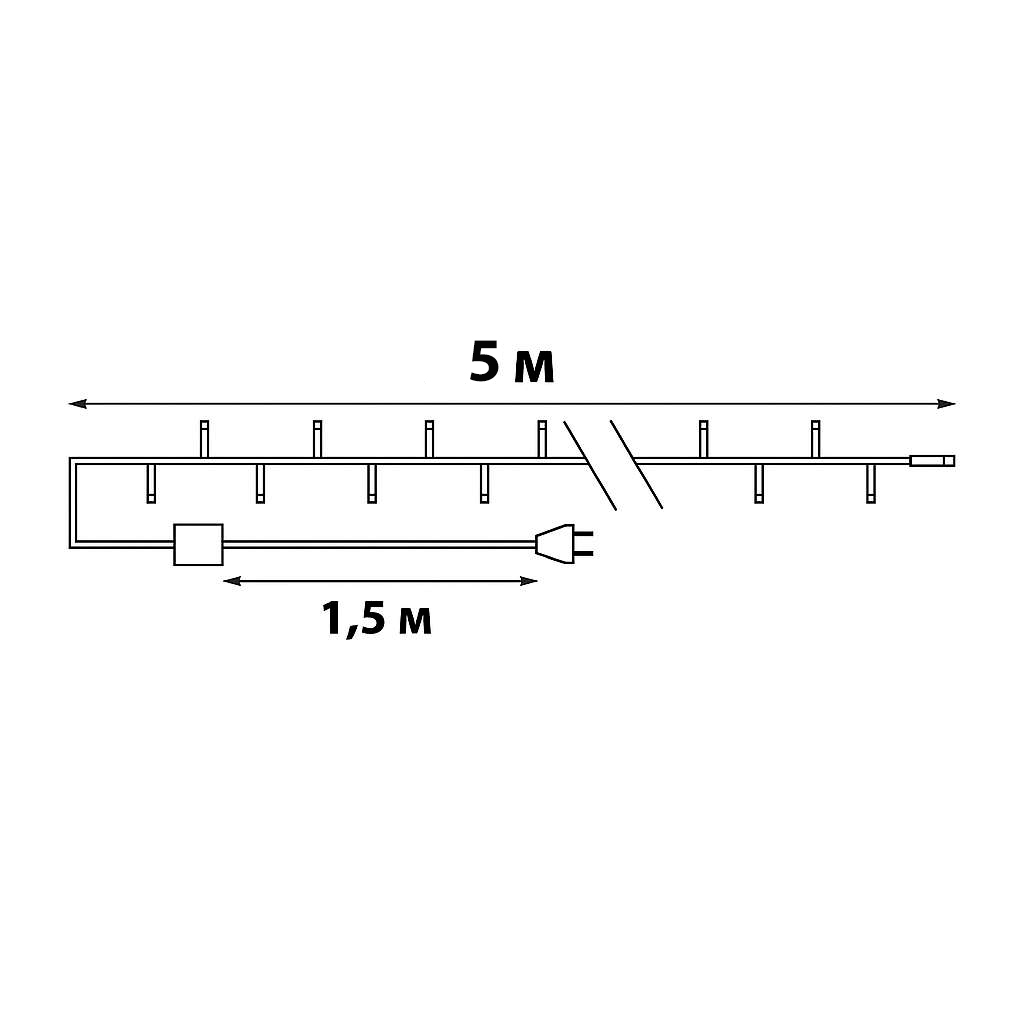 ULD-S0500-050-DTA WHITE IP20 Гирлянда светодиодная с контроллером. 5м. 50 светодиодов. Белый свет. Провод прозрачный. ТМ Uniel