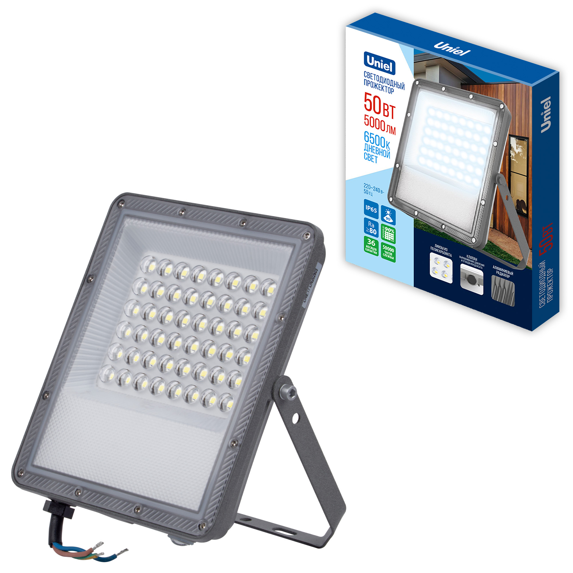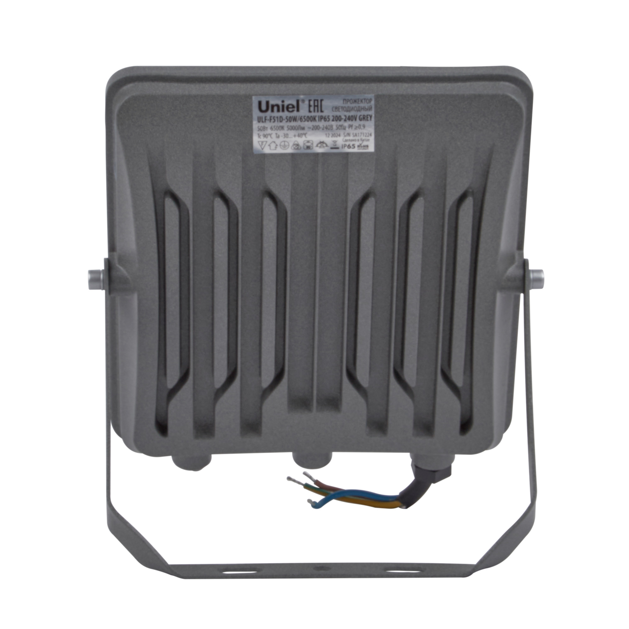 ULF-F51D-50W-6500K IP65 200-240V GREY Прожектор светодиодный. Дневной свет 6500K. Угол 90 градусов. Корпус серый. TM Uniel