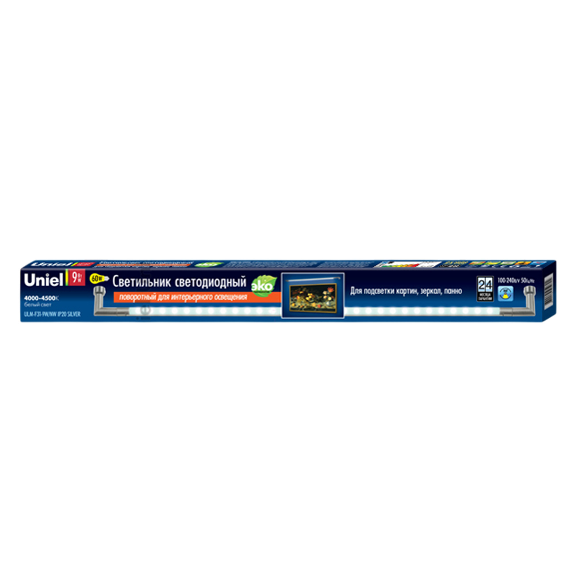 ULM-F31-9W-NW IP20 SILVER Светильник светодиодный поворотный для интерьерного освещения. В комплекте с адаптером. Длина 59 см. Материал корпуса алюминий. цвет серебро. Белый свет. Упаковка-картонная коробка.