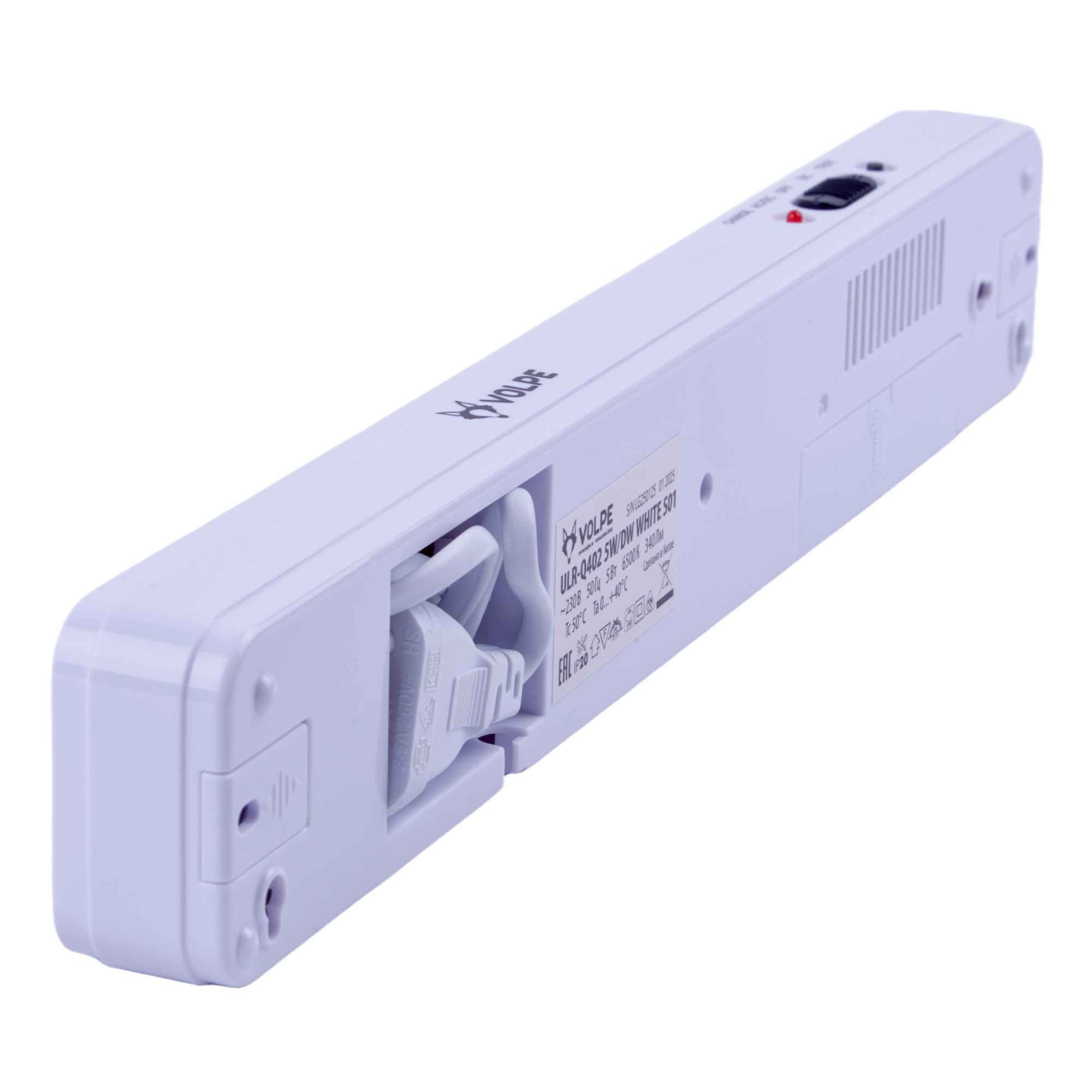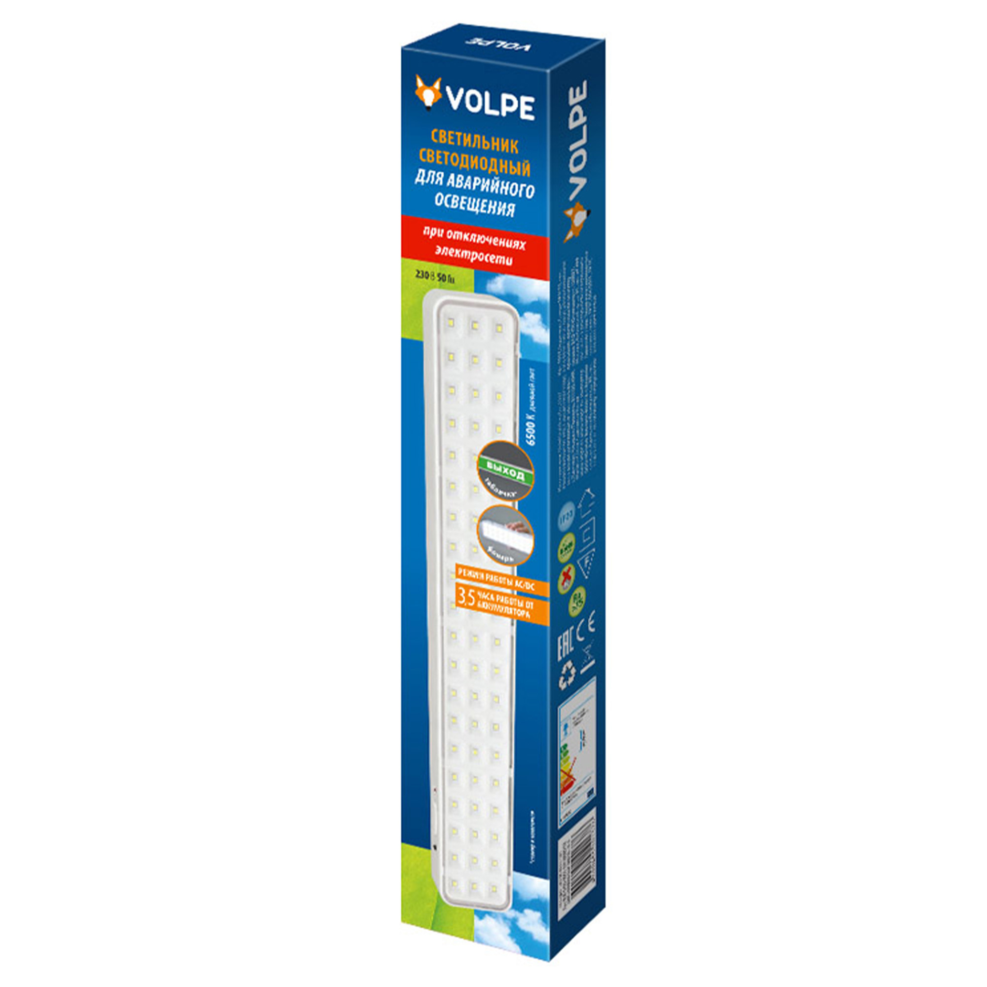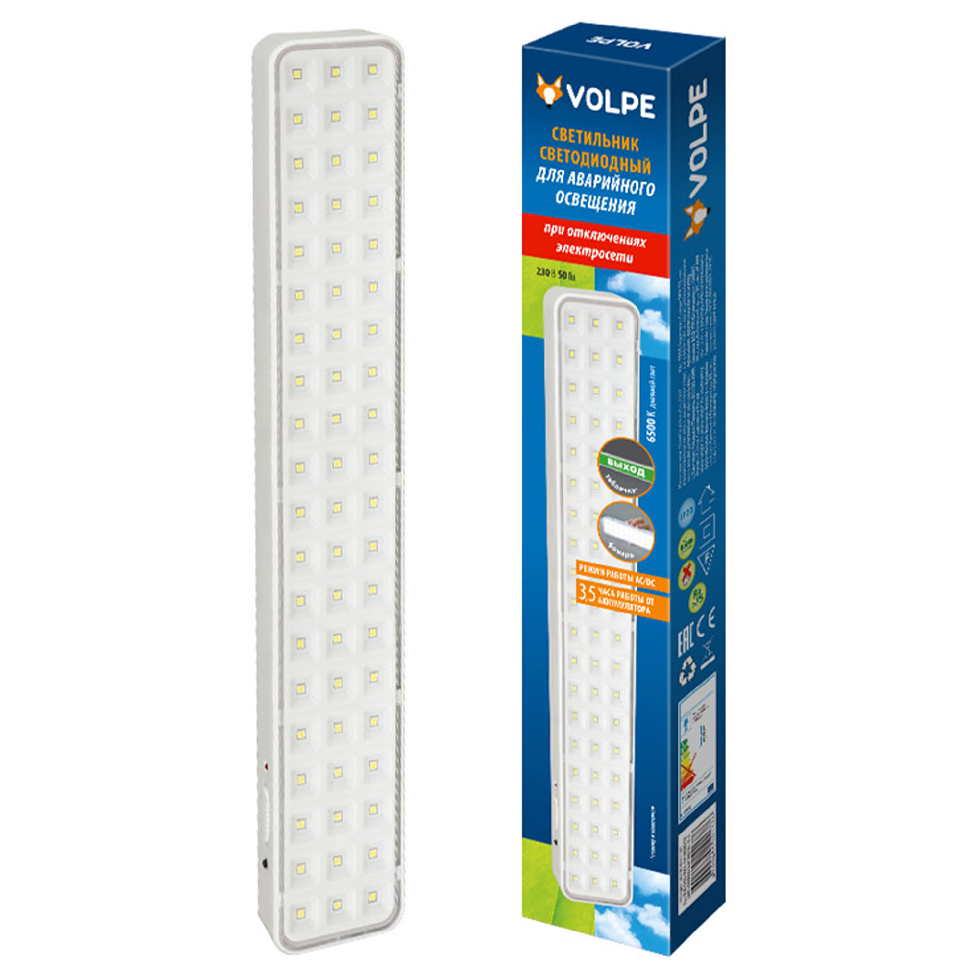 ULR-Q402 5W-DW WHITE S01 Светильник светодиодный аварийного освещения. Наклейка ВЫХОД. Дневной свет 6500K. Встроенный аккумулятор AC-DС. Корпус белый. ТМ Volpe.